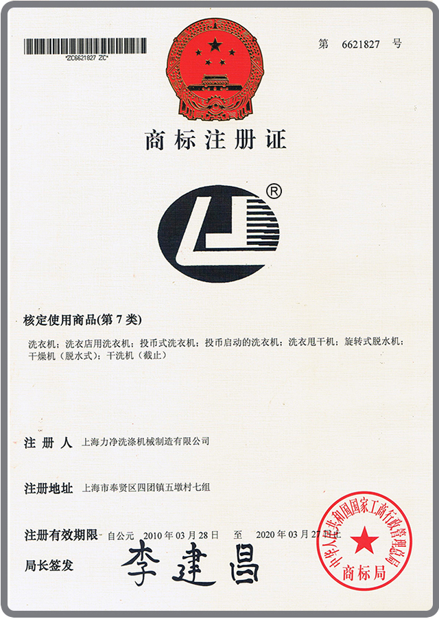 好多商家的商標都為圖形商標標識,并非都為中文商標,為維護廣大用戶和消費者權(quán)益,防止廣大客戶受到蒙蔽,誤導(dǎo)客戶,也為了讓廣大新老客戶買到真正上海力凈洗滌機械制造有限公司品牌的產(chǎn)品,希望用戶和消費者在采購時認清生產(chǎn)廠家及產(chǎn)品屬地,以免遭受經(jīng)濟損失,上海力凈洗滌機械制造有限公司特此做出鄭重聲明,請認準商標標識的產(chǎn)品,無此商標圖形的產(chǎn)品均非我上海力凈洗滌機械制造有限公司生產(chǎn)的洗滌設(shè)備,并歡迎廣大新老客戶蒞臨我公司實地考察指導(dǎo),保證每位客戶乘興而來,滿意而歸~!