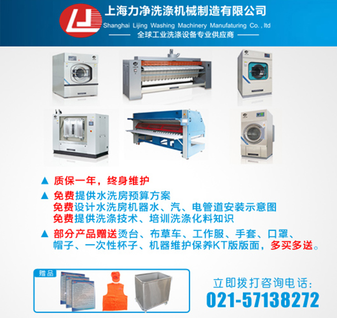 你們是我們成長路上堅(jiān)強(qiáng)的后盾,我們真誠的感謝你們的支持,感謝一路有你們的信任和陪伴,才有了上海力凈今天的豐碩成果,感謝你們,感謝有你,在此,上海力凈鄭重承諾:凡購買上海力凈產(chǎn)品,質(zhì)保一年,終身維護(hù),免費(fèi)提供水洗房預(yù)算方案,免費(fèi)設(shè)計(jì)水洗房機(jī)器水、汽、電管道安裝示意圖,免費(fèi)提供洗滌技術(shù)、培訓(xùn)洗滌化料知識(shí),使你買的實(shí)惠、放心,用的舒心、安心。部分產(chǎn)品更有精美禮品相送,驚喜不斷。