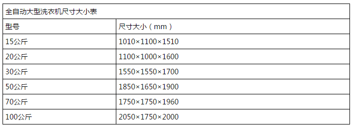 全自動工業(yè)洗衣機尺寸大小:目前市場中的全自動工業(yè)洗衣機,主要有15公斤至100公斤多個容量級別的。同樣也是容量越大,周身尺寸也就越大。據(jù)上海力凈觀察也發(fā)現(xiàn),不同品牌的產(chǎn)品在尺寸上相差不大于5%,對此,我們根據(jù)我公司產(chǎn)品的實際尺寸大小,為大家羅列出了15公斤至100公斤全自動工業(yè)洗衣機的尺寸大小表。