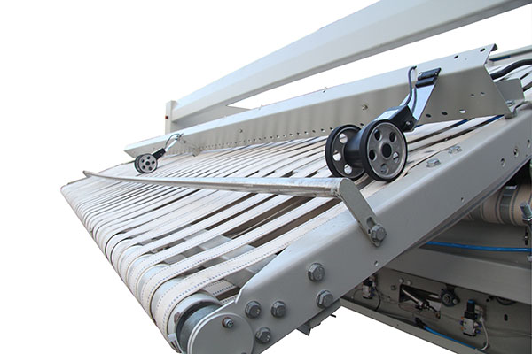 1、電腦板智能選擇折疊折數(shù),可達(dá)到兩橫三縱共五折的折疊功能。更大折疊范圍3000*3000mm,可與不同型號(hào)的燙平機(jī)配套使用,達(dá)到自動(dòng)折疊各種布草的效果。